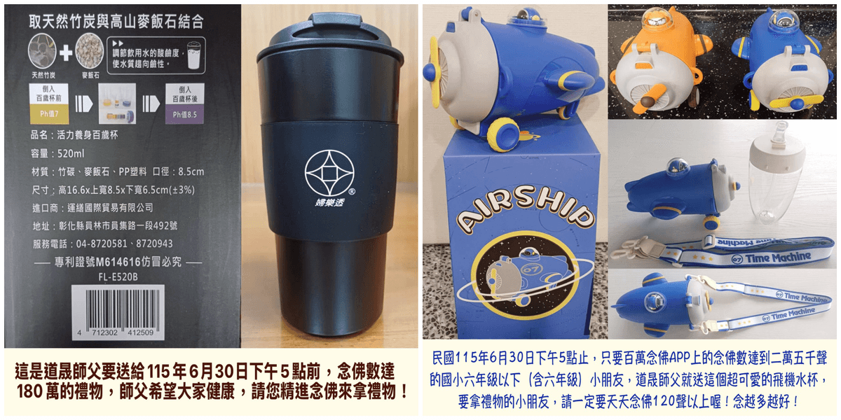師父致贈:阿彌陀佛金令牌、健康陶瓷保溫杯